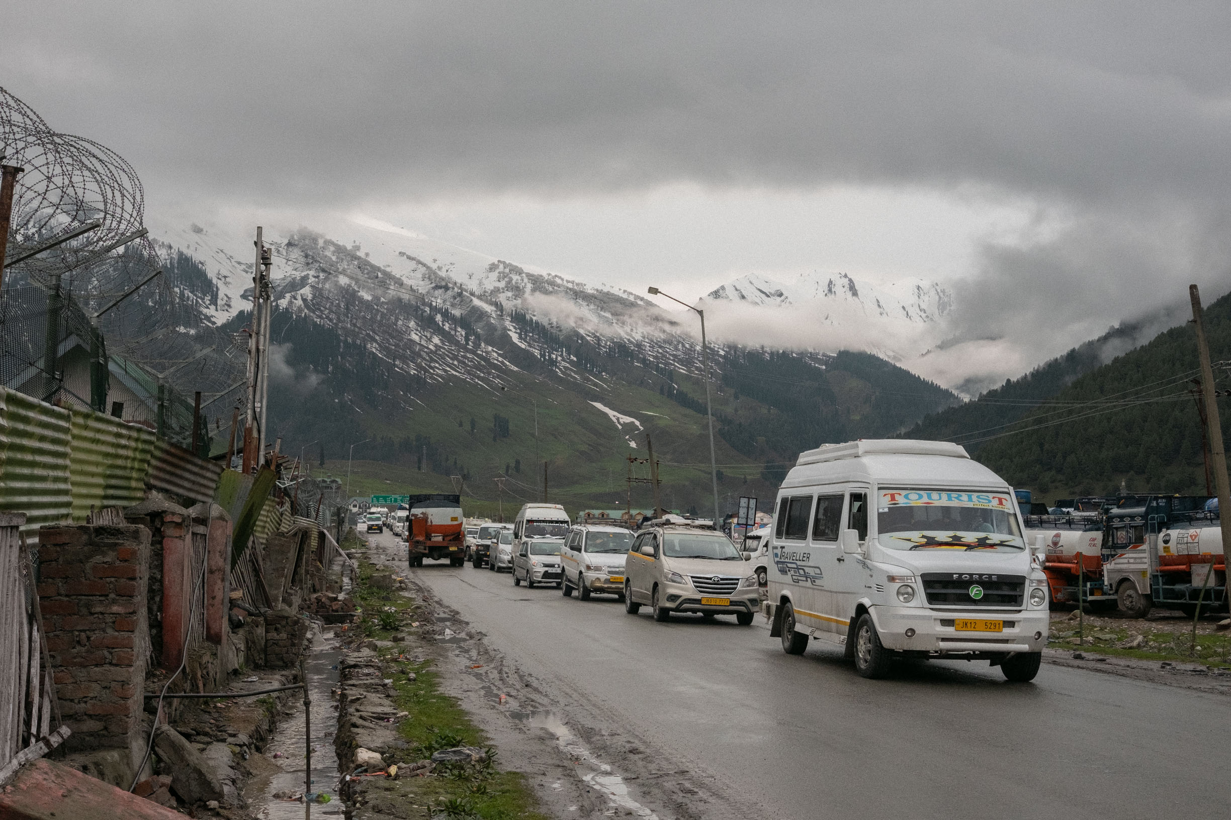 En la carretera que une Srinagar con Ladakh se encuentra Sonamarg, un pequeño pueblo de montaña que parece formarse originalmente por una única calle de pequeños comercios y hostales-restaurante que dan servicio a los viajeros y trabajadores de camino a Kashmir o Ladakh. Ladakh está conectado con India sólo por dos carreteras de montaña: Leh-Srinagar y Leh-Manali. Por las condiciones meteorológicas a estas altitudes, estas solo se encuentran abiertas durante los meses de verano. La carretera de Srinagar está en mejores condiciones porque sirve de paso por tierra a las fuerzas armadas en presencia constante en la zona. Kashmir y Ladakh son valiosísimos puntos estratégicos cuyo control orquesta sustancialmente la relación geopolítica entre India, China y Pakistán.